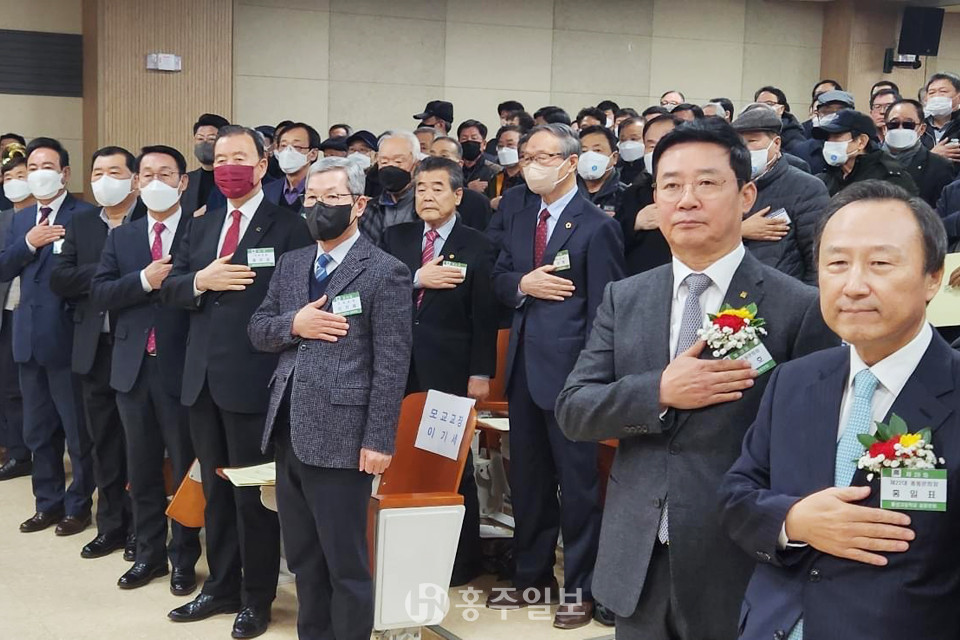 홍성고등학교총동문회(이임회장 홍일표·취임회장 김종호)는 지난 11일 모교 시청각실에서 동문 500여 명이 참석한 가운데 ‘2023년도 정기총회 및 제22·23대 총동문회장 이·취임식’ 행사를 개최했다.<사진>