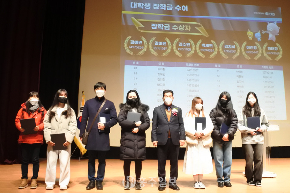 이날 정기총회에서는 홍성신협 발전을 위해 노력한 위원회 위원장 2명에 대한 감사패와 모범조합원 5명에게 이사장 표창을 수여했다. 또 조합원 자녀 우수학생 20명에게 장학금 100만 원씩 총 2000만 원을 전달했다.<사진>