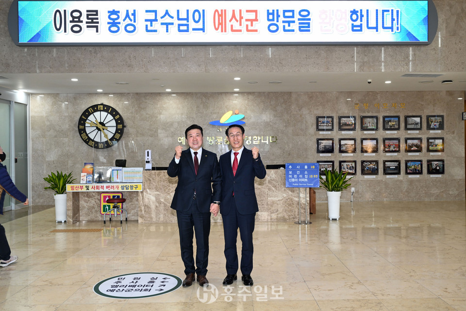 이용록 홍성군수는 지난 22일 예산군청에서 홍성-예산 농어촌버스 무료 환승 시행을 골자로 하는 협약을 최재구 예산군수와 체결했다.