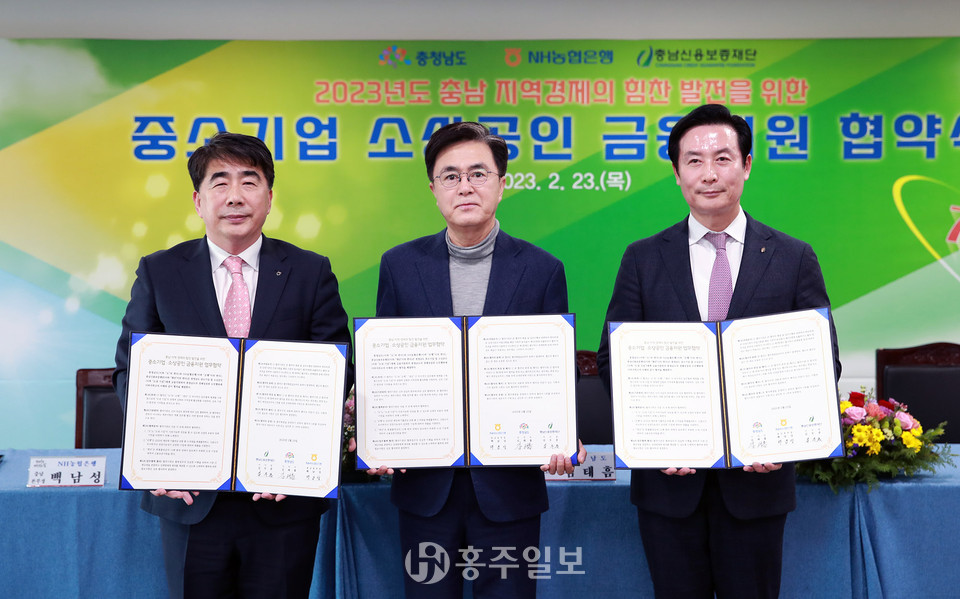 충남도가 도내 중소기업‧소상공인에 대한 금융 지원 확대를 통한 경영 안정을 위해 NH농협은행 충남본부‧충남신용보증재단과 손을 맞잡았다.