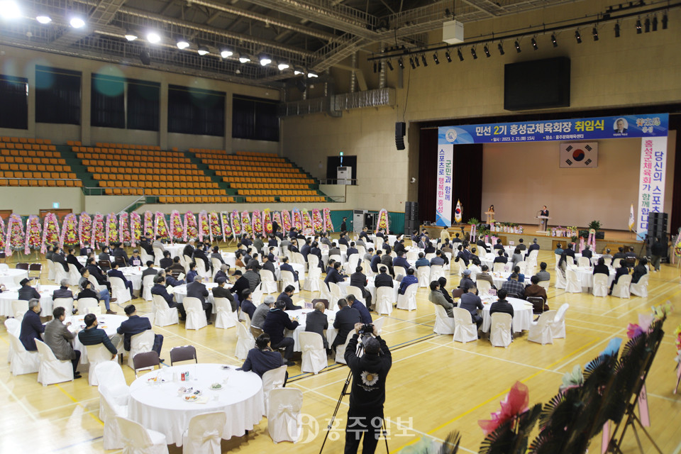 ‘민선 2기 홍성군체육회장 취임식’이 지난 21일 홍주문화체육센터에서 거행됐다. 이번 취임식은 △국민의례 △인준장 수여 △체육회장 약력 소개 △취임사 △격려사 및 축사 △임원 소개 △케이크 커팅식 △기념사진촬영 등의 순으로 진행됐다.
