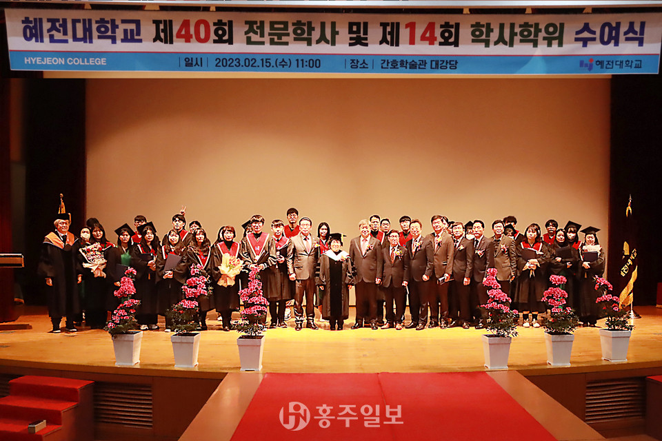 혜전대학교(총장 이혜숙)는 지난 15일 간호학술관 대강당에서 대면으로 ‘2022학년도 전기 학위수여식’을 거행했다. 혜전대학교는 지난 3년간 코로나19로 인해 온라인 학위수여식을 했으나 올해는 총 747명의 졸업생과 학부모 등이 참석한 가운데 졸업식을 열었다.