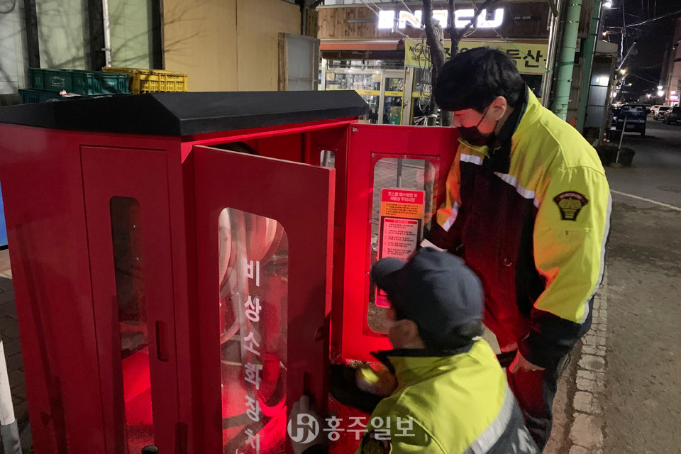 홍성읍남성의용소방대(대장 김영환)는 지난해 11월 7일부터 오는 28일까지 홍성전통시장, 홍성상설시장 등 겨울철 화재 취약대상 지역을 야간순찰을 실시하고 있다. 대원들은 순찰 시 화기방치행위, 옥외화기 취급과 화재원인 등을 현장 조치한다.
