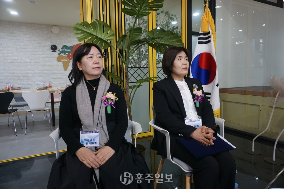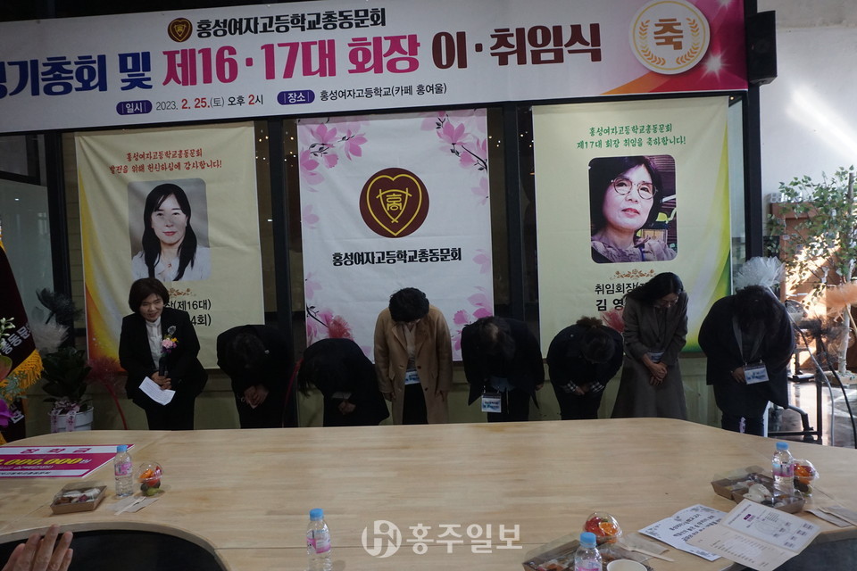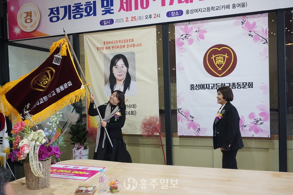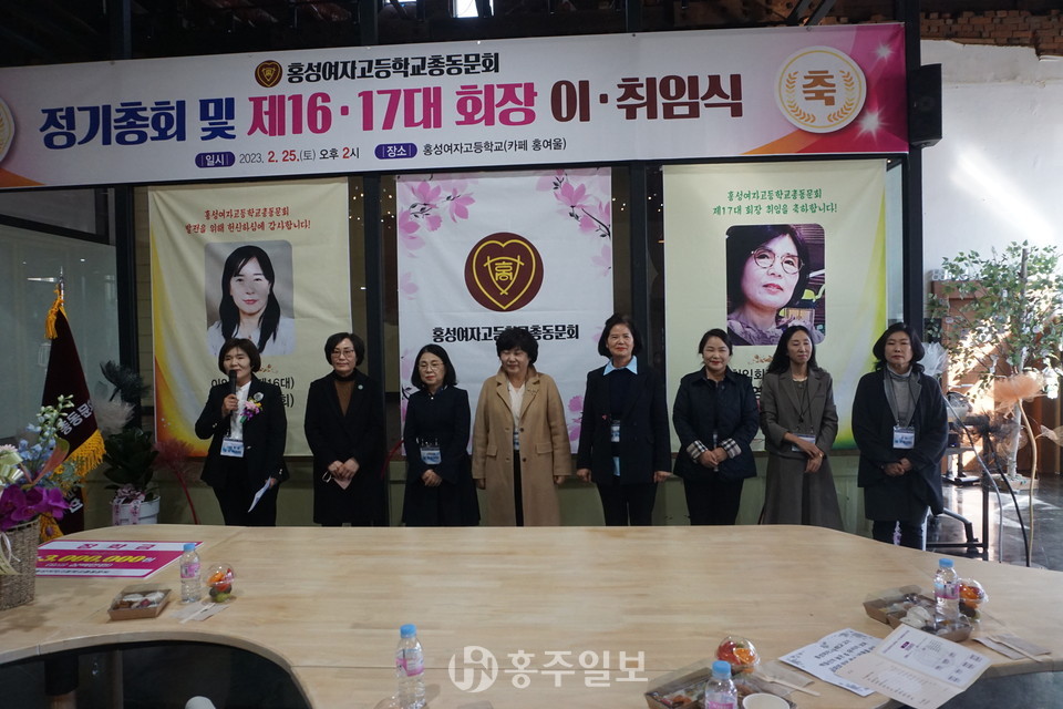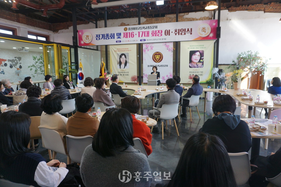 홍성여자고등학교총동문회(이임회장 강환숙·취임회장 김영숙)는 지난 25일 모교 카페 홍여울에서 ‘홍성여자고등학교총동문회 정기총회 및 제16·17대 회장 이·취임식’을 개최했다.
