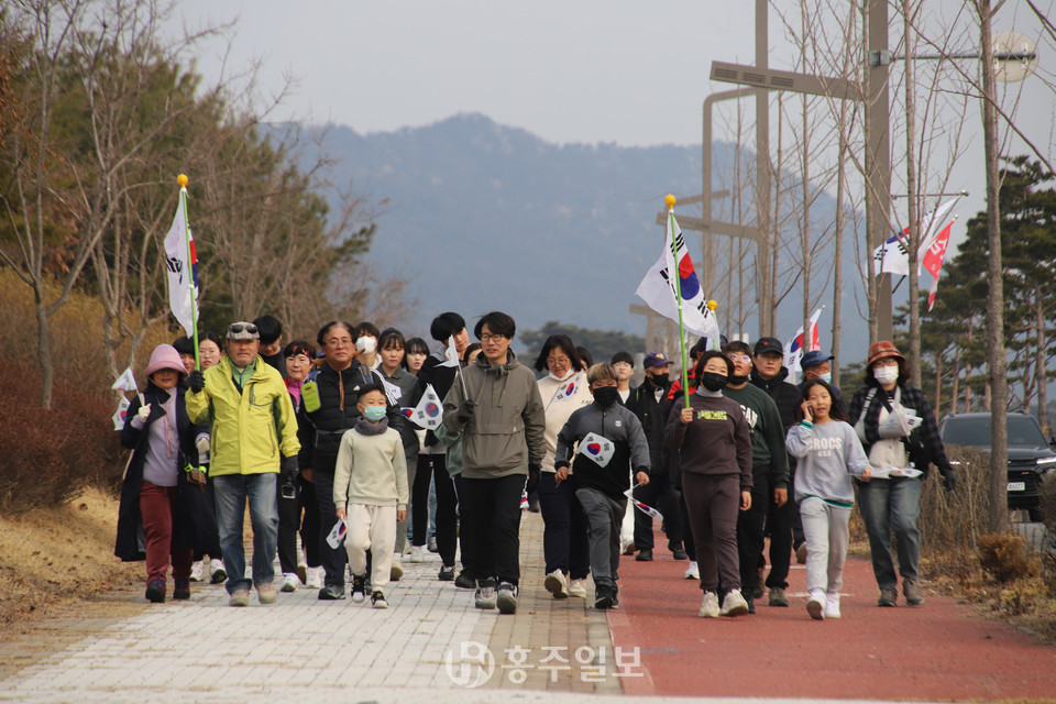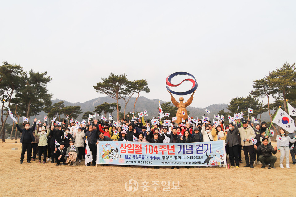 ‘제104주년 3·1 만세운동 기념 걷기’ 대회가 지난 1일 홍예공원 ‘독립운동가의 거리’에서 개막식을 펼쳤다. 홍성문화연대와 예산시민연대가 10년간 매년 행사를 준비해 왔고 올해도 많은 사람이 참석해 3·1절 분위기를 끌어 올렸다.
