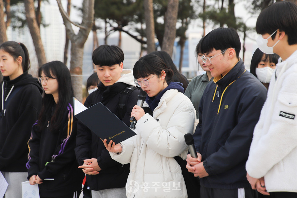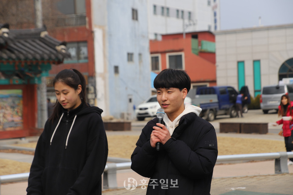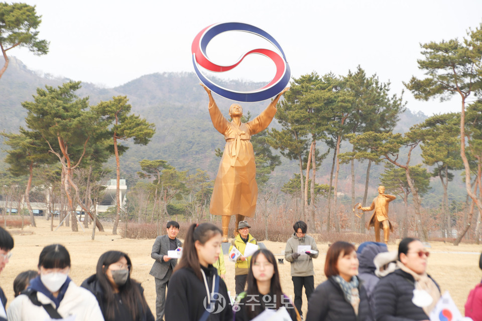 홍예공원에서 있었던 개회식에는 △묵념 △독립선언문 낭독(삽교고등학교 학생들) △만세삼창 △3·1절 노래배우기 등으로 행사가 진행됐다.
