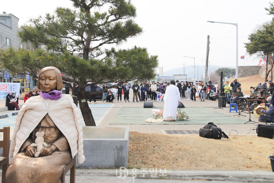 홍예공원에서부터 홍주읍성 일원 홍성 평화의 소녀상 앞까지 6.6km를 기념 걷기를 함께 한 참가자들은 홍성문화연대와 민족예술인총연합 홍성지회 등이 준비한 폐회식에 함께 했다.