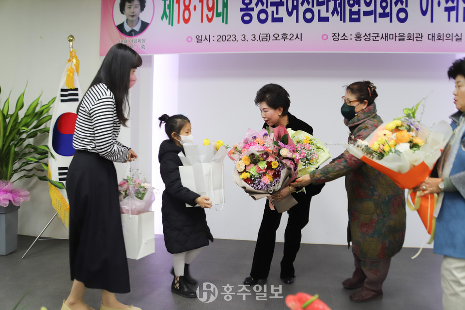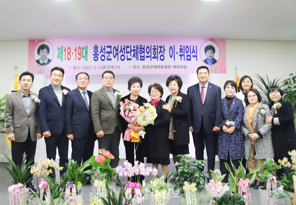 홍성군여성단체협의회(이임회장 곽은숙·취임회장 전정숙)는 3일 오후 2시 홍성군새마을회관 대회의실에서 ‘제18·19대 회장 이·취임식’ 행사를 개최했다. 이날 이·취임식에서는 이용록 홍성군수와 홍성군의회 의원 등 수많은 인파가 몰리며 이·취임식을 축하했다.