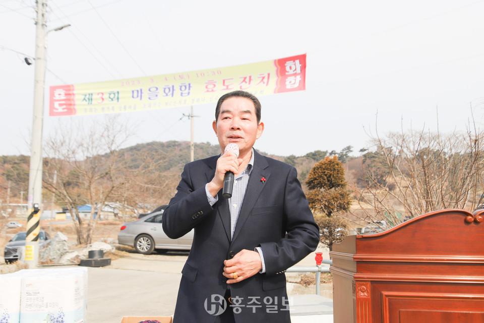 ‘제3회 마을화합 효도잔치’가 4일 오전 10시 30분부터 서부면 상황마을 마을회관에서 펼쳐졌다. 이날 행사에는 상황 노인회 소속의 36명의 어르신과 마을 주민분들이 함께 모여 진행됐다. 또한 이선균 홍성군의회 의장과 김덕배 군의원, 김재철 서부면장 등도 참석해 자리를 빛냈다.
