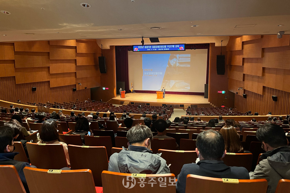 충남도는 6일 도청 문예회관 대강당에서 보건복지부 주관 ‘2023년 공공기관 중증장애인 생산품 우선구매 교육’이 열렸다고 밝혔다.<사진>