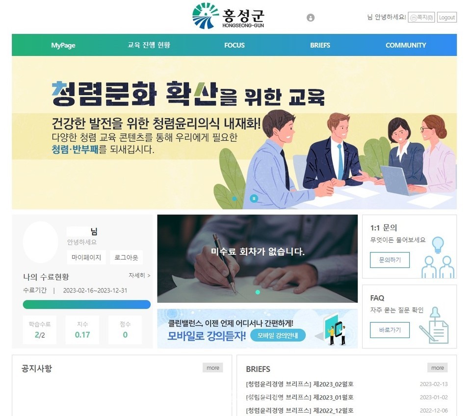 홍성군이 전 직원을 대상으로 지난 2월 말부터 오는 12월 말까지 매주 화요일, 내부 행정시스템과 연계한 ‘청렴 팝업 교육’을 운영한다고 밝혔다.