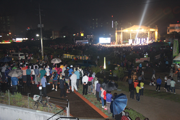 [개막 당일인 14일 오후 7시경 많은 군민들이 여하정을 찾아 축제의 서막을 축하했다]