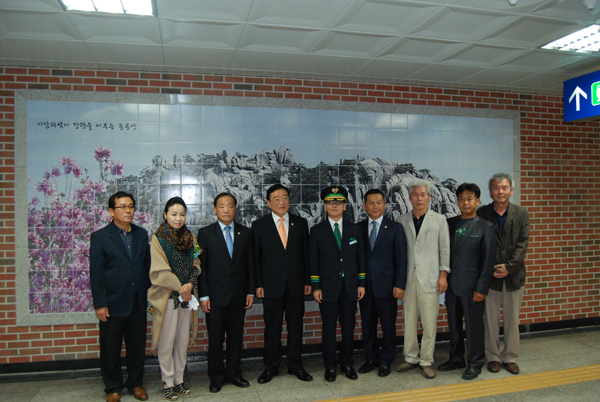 군은 홍성역 플랫폼과 역사를 연결하는 지하도에 빈 공간으로 있던 자리를 활용해 홍성8경과 고암 이응노의 집, 조류탐사과학관 등을 아트타일 벽화로 제작 설치하고, 지난 19일 오후 2시 김석환 군수, 조태원 군의회 의장, 이주연 홍성역장 등 관계자 10여명이 참석한 가운데 제막식을 가졌다.