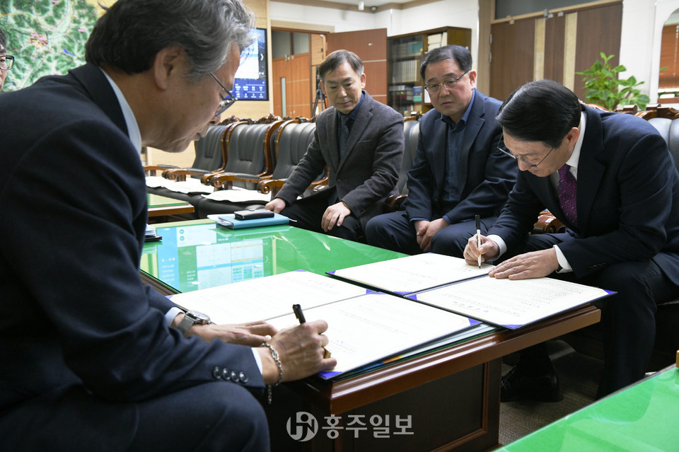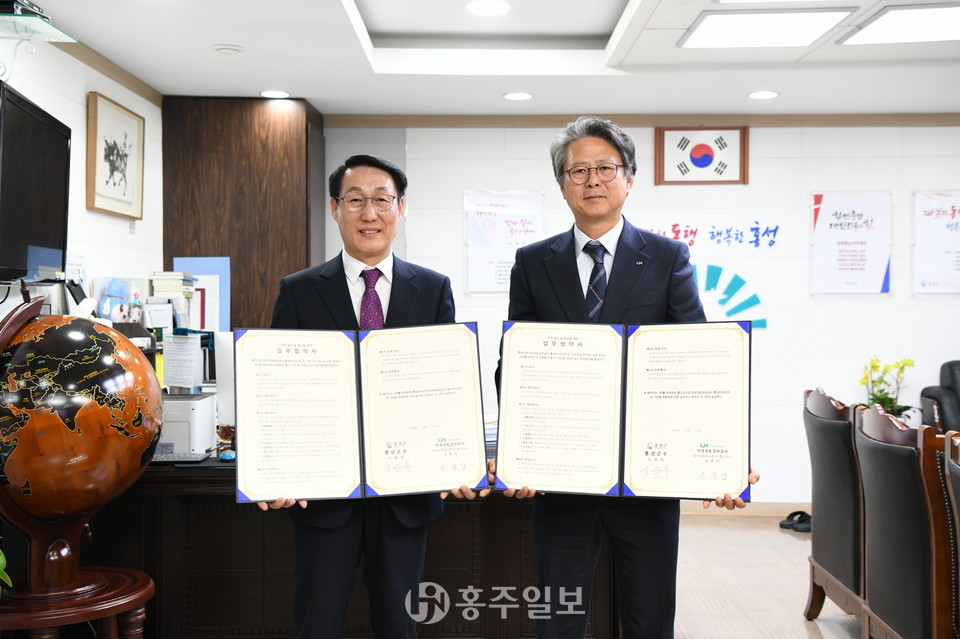 홍성군(군수 이용록)은 지난 13일 한국국토정보공사(LX) 홍성지사(지사장 손종상)와 상호 존중과 신뢰를 바탕으로 상생발전하고 주민 삶의 질 향상을 위한 업무협약(MOU)을 체결했다.<사진>