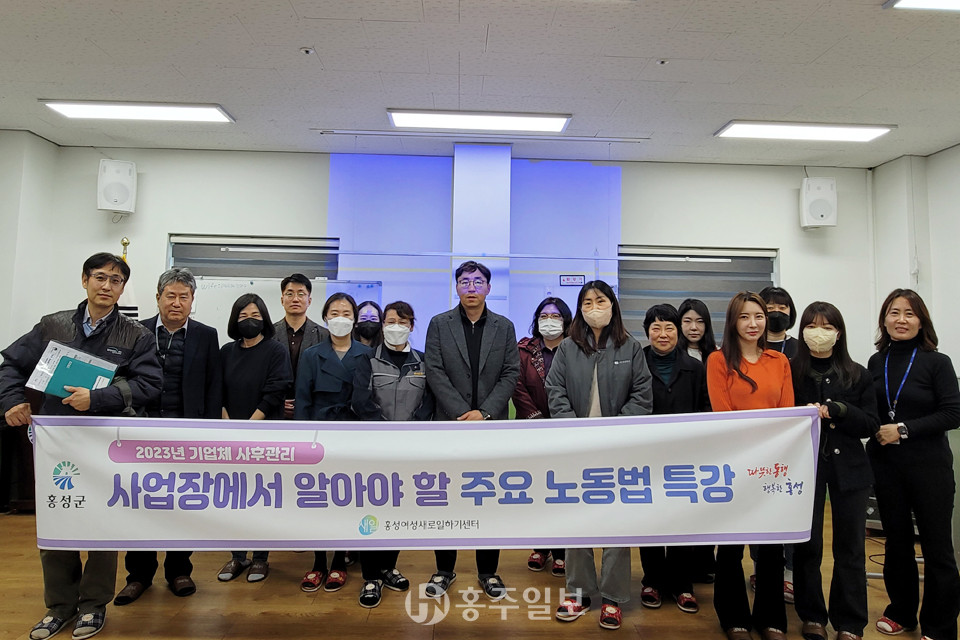 홍성여성새로일하기센터(센터장 박미성·이하 새일센터)가 지난 9일 일반 제조업체를 대상으로 ‘사업장에서 꼭 알아야 할 주요 노동법’이라는 주제로 인사노무교육을 실시했다.<사진>