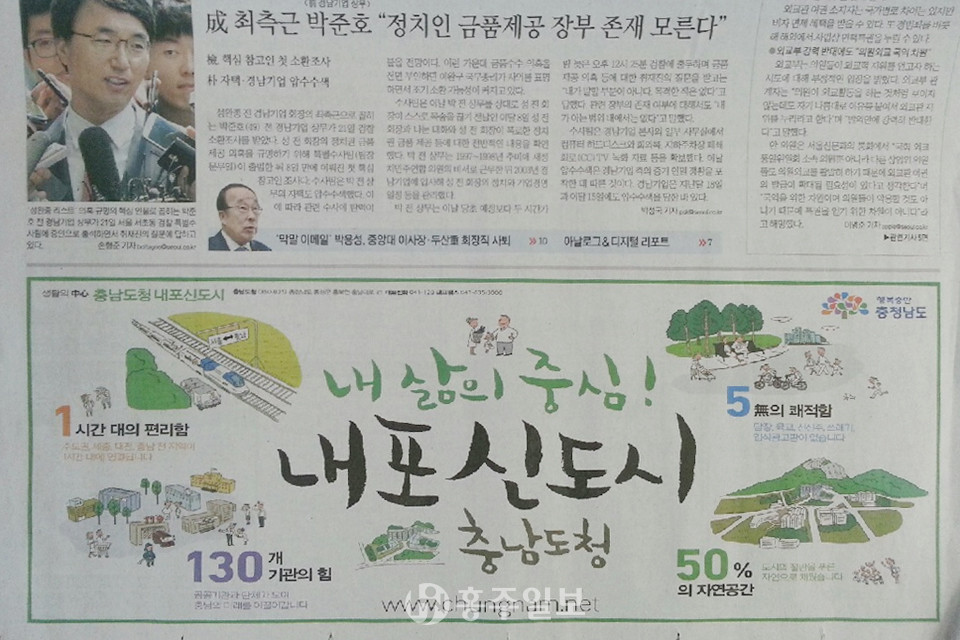 충남도의 경우도 ‘내포신도시’ 홍보에 막대한 예산을 투입했지만 결과적으로 홍보에는 성공하지 못했다는 지적이 일고 있는 이유다. 충남도에서 중앙일간지나 방송 등에 홍보한 ‘내포신도시 관련 광고’에는 홍성과 예산은 아예 빠져 있었다. 사실 충남도청이 홍성과 예산으로 이전하면서 많은 혼란과 논란을 겪고 있는 이유 중 하나다. 특히 ‘도청신도시개발구역’ 명칭을 놓고도 혼선이 더하고 있는 측면이 강했다.