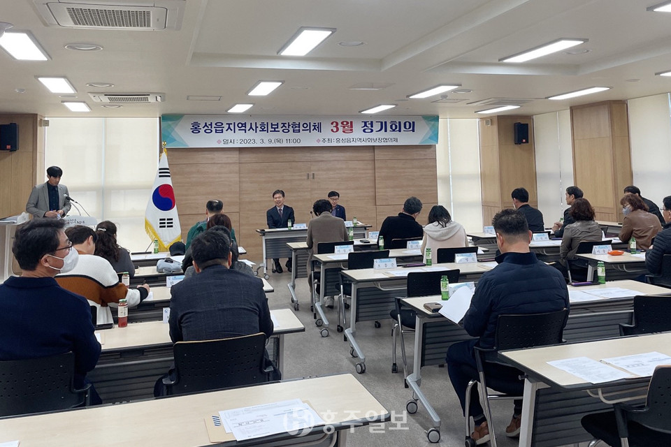 홍성읍지역사회보장협의체(민간위원장 오세승·공공위원장 라대경)는 지난 9일 홍성읍행정복지센터 2층 회의실에서 협의체 위원 25명이 참석한 가운데 ‘2023년 지역사회보장협의체 3월 정기회의’를 개최했다.<사진>