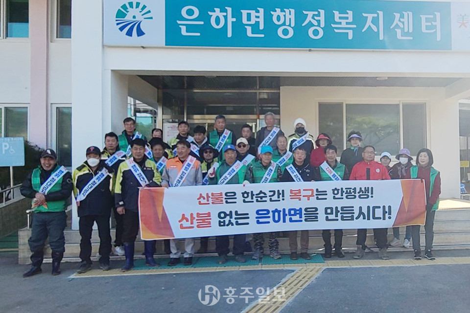 은하면(면장 최인수)은 지난 13일 본격적인 영농준비 기간을 맞아 마을 주민들이 자발적으로 산불예방에 대한 경각심을 갖기 위한 산불 예방 캠페인 활동을 전개했다.<사진>