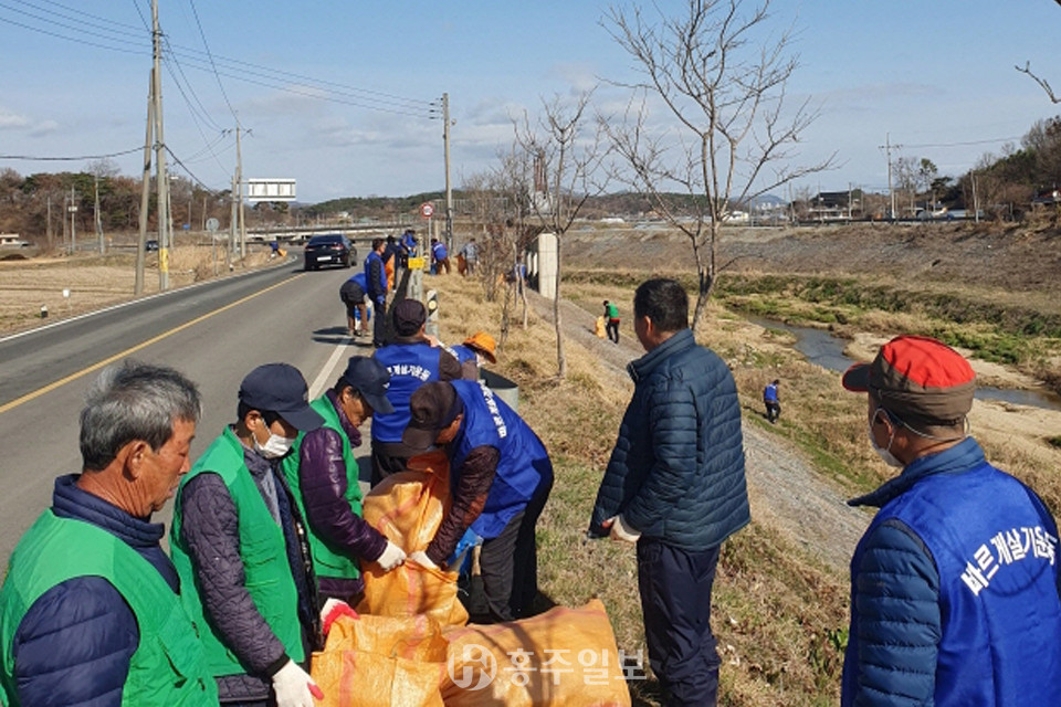 꽃이 만연할 봄을 앞둔 홍동면(면장 김태기)에서는 벚꽃길로 유명한 삽교천변의 환경정화를 위해 홍동면새마을남녀지도자(회장 박유덕, 부녀회장 모영미), 홍동면바르게살기위원회(회장 함동열) 회원들이 발 벗고 나섰다.