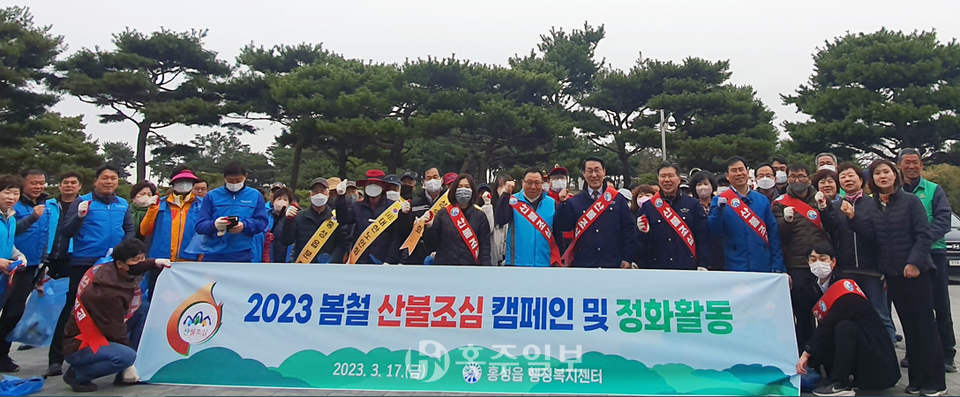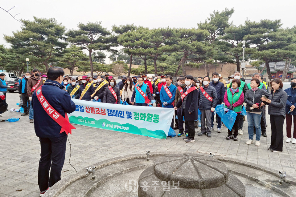 홍성읍(읍장 라대경)이 지난 17일 봄철을 맞이해 쾌적한 홍성을 만들기 위한 대청소와 산불조심 캠페인을 함께 추진했다.