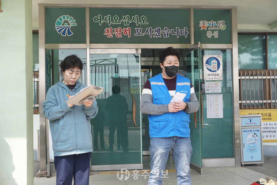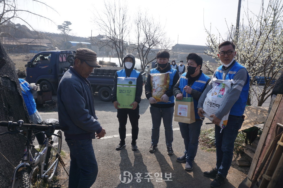 쌀·마스크 등 생필품 전달… 홍북 주민 봉사 참여
