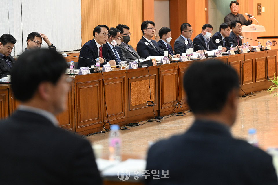 군은 지난 20일 이용록 군수, 홍문표 국회의원, 이선균 의장과 군의원, 이종화·이상근 도의원 등 50여 명이 참석한 가운데 지역의 미래와 성장 기반 구축을 위한 2024년 국·도비 확보 전략 보고회를 개최하고 정치역량을 결집해 힘을 한데 모으기로 다짐했다.