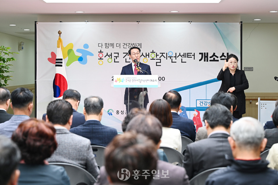 홍성군민들의 건강한 생활을 관리·지원하는 홍성군건강생활지원센터가 지난 16일 이용록 홍성군수와 홍문표 국회의원, 이선균 홍성군의회 의장 등 관계자 및 내빈 70여 명이 참석한 가운데 개소식을 개최했다.<사진>
