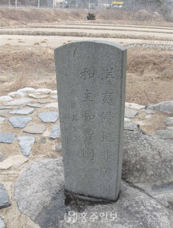 홍성지역에 자리하고 있는 이 비는 넓적한 자연암석 위에 비의 몸체를 꽂아놓은 모습이다. 비문에는 “서양 오랑캐가 침범했는데 싸우지 않으면 화친을 할 수밖에 없고, 화친을 주장하면 나라를 파는 것이 된다”는 강한 어투의 경고 문구를 적어 놓았다.