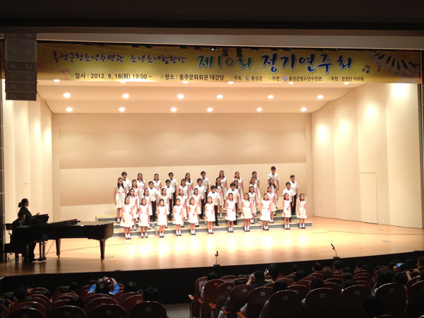한편 홍성군청소년수련관 소년소녀합창단은 초등학생과 중학생으로 구성돼 지난 2002년에 창단됐다. 해마다 각종 합창제를 비롯해 연 10여 차례의 크고 작은 공연 및 발표회를 갖고 있다. 지난해에는 한국청소년합창콩쿠르에 참가해 수상하는 등 발전을 거듭하고 있다.