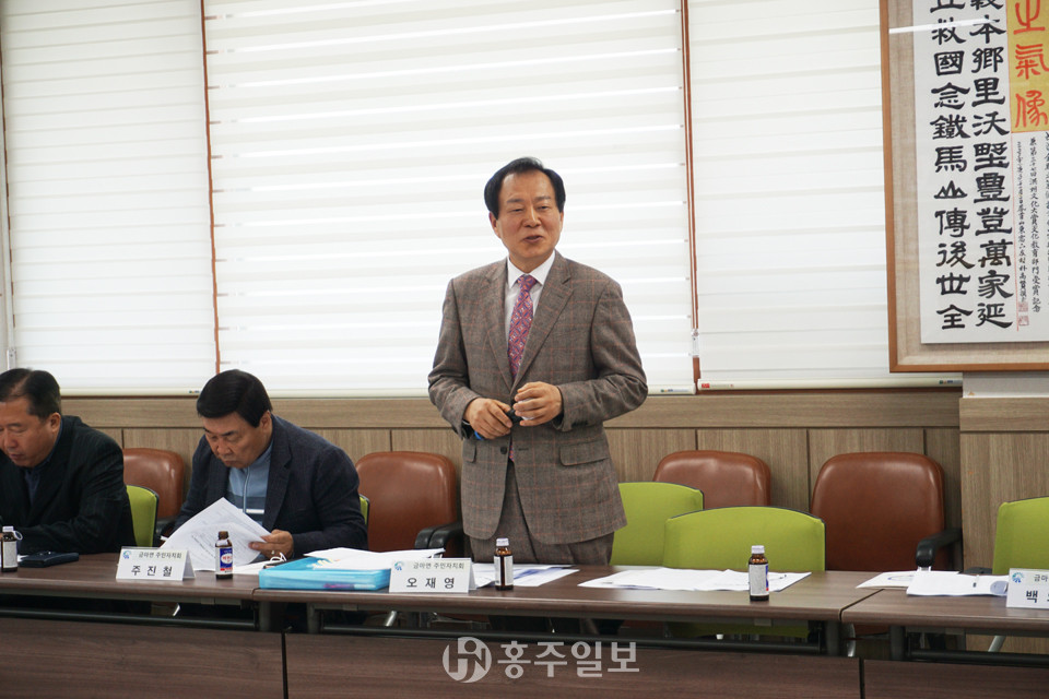 이번 회의는 △금마면주민자치회 사무국장 채용 △사업비 현황 △주민자치센터 관련 예산운영 계획 등 보고안건과 △주민참여예산 제안사업 의견수렴(마을 게시판 설치, 주요 도로변 꽃길 조성, 마을 소식지 만들기) △선진지 견학 등 협의안건, △홍성군 농촌신활력플러스사업 주민설명회 홍보 등 기타안건 순으로 진행됐으며, 금마면에서는 봄철 산불조심기간 안내와 금마면3·1독립유공자 추모제향 및 독립만세의길 걷기행사 등을 홍보했다.