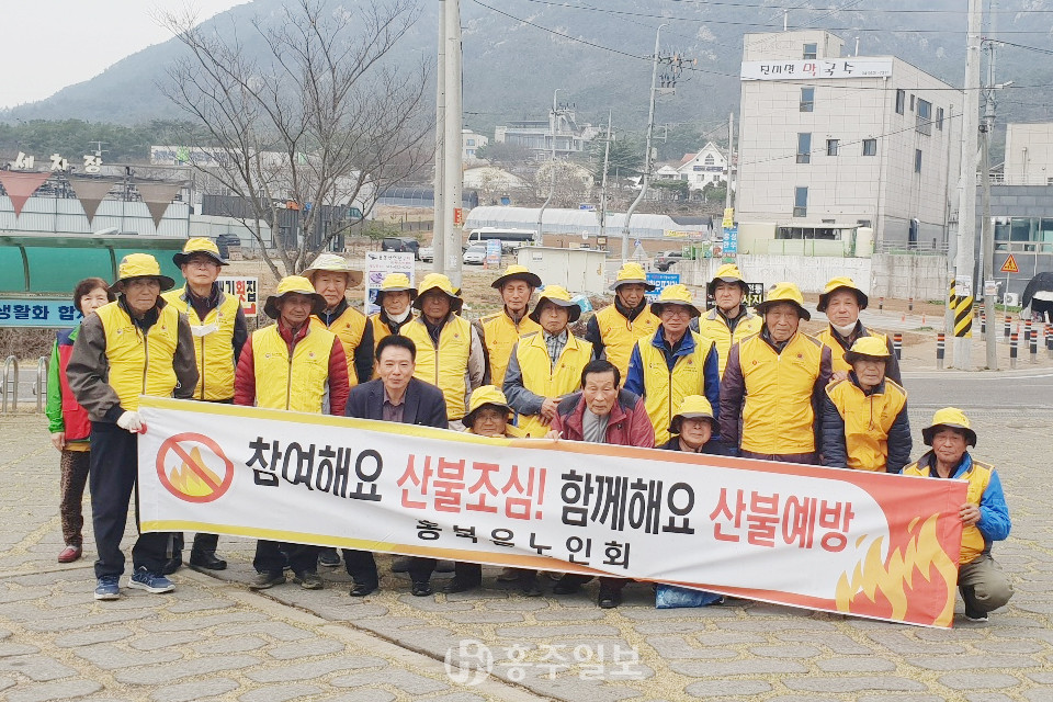 대한노인회 홍성군지회(지회장 조화원)는 지난 23일 용봉산노인자원봉사클럽(단장 임환수) 단원 20명과 홍북읍장을 비롯한 기관단체장들과 용봉산 주변 환경정화 활동과 함께 산불조심 캠페인을 실시했다.