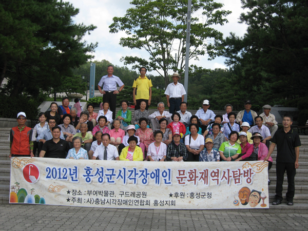 사)충남시각장애인연합회 홍성지회(지회장 윤용돈)가 홍성군의 후원으로 지난 11일 시각협회 회원 및 직원 60여명이 참가한 가운데 공주·부여 일대로 ‘2012년 홍성군시각장애인 문화재역사탐방’을 다녀왔다.