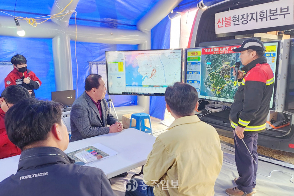 특히 지난 2일 오전 11시경 산불이 발생한 홍성 서부면 중리 일원은 산림 약 1454㏊를 태우고 주택·축사·창고 등 71개소가 소실됐으며, 300여 명의 이재민이 발생한 것으로 집계됐다.