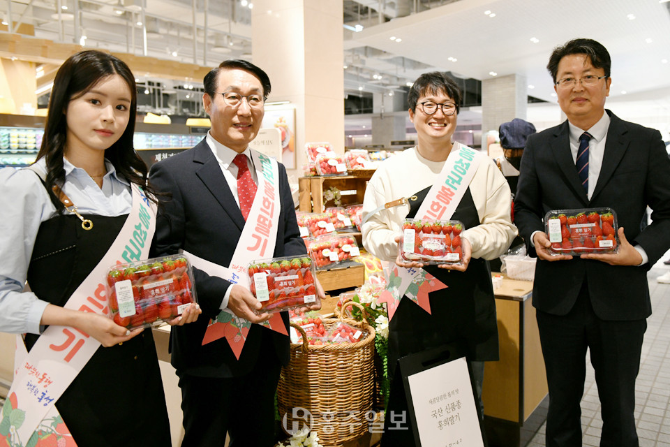 홍성군농업기술센터(소장 이승복)와 민간농업법인 헤테로(대표 최이영)가 함께 육성한 ‘홍희’ 딸기가 홍보 판촉을 위해 지난달 31일부터 지난 2일까지 3일간 압구정 본점을 비롯한 현대백화점 전 지점(경인·충청 12개점, 영남 4개점)에서 판매됐다.