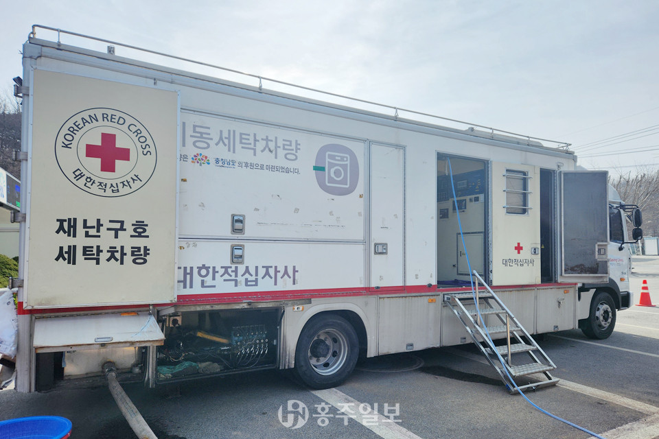 구항면(면장 이기태)가 지난달 29일 새봄을 맞이하면서 청로노인종합복지센터와 대한적십자사봉사회 홍성지구협의회와 함께 거동이 불편한 지역의 취약계층에게 이불 빨래를 해주는 ‘이동 빨래방’ 운영을 실시했다.<사진>