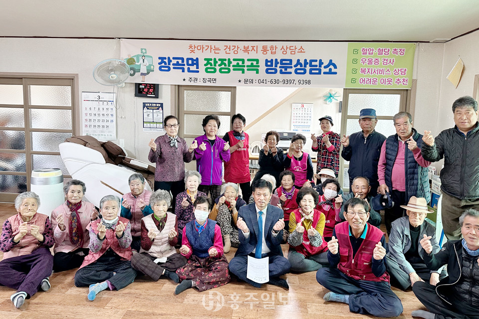 ‘장장곡곡 방문상담소’는 장곡면의 마을 방방곡곡 찾아가 빈틈없는 보건복지 행정을 추진하는 것으로 고령화된 농촌지역 인구 특성을 고려해 이동의 제약이 있는 어르신들을 직접 찾아가 건강·복지 문제를 발굴하고 대응하는 것이 취지이다.