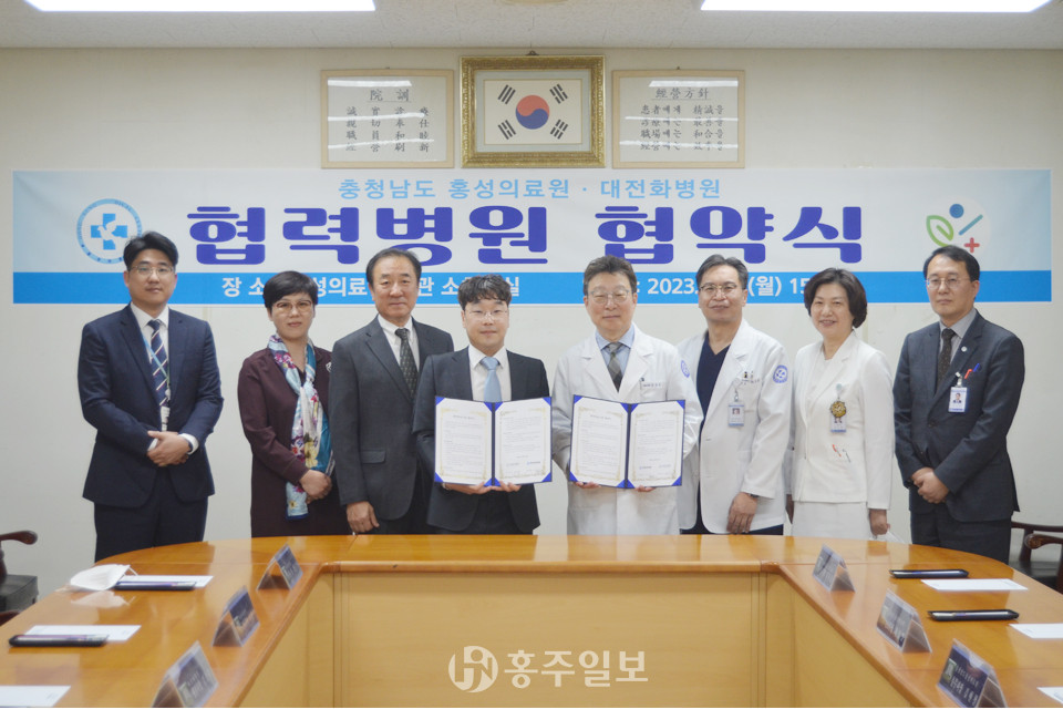 홍성의료원(원장 김건식)과 대전화병원(병원장 신재준)은 지난 3일 홍성의료원 소회의실에서 협력병원 협약을 맺고 향후 진료, 연구 등에 관한 협력체계를 구축하는 등 양 기관간 상호 발전과 진료 교류 협력을 위한 협약식을 진행했다.