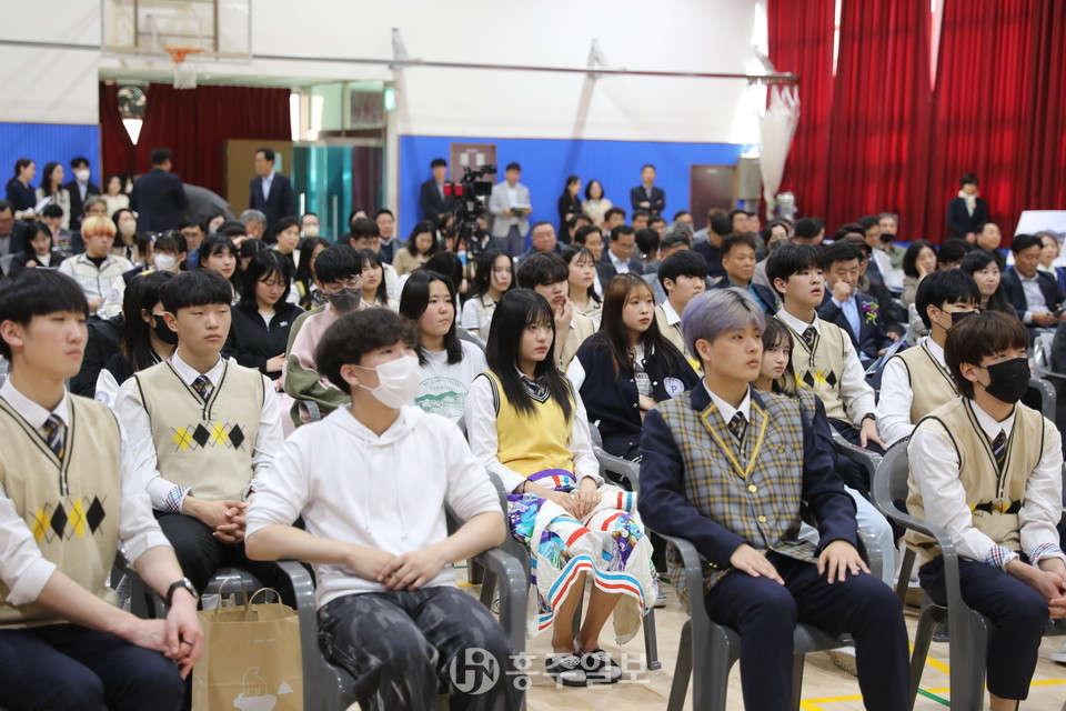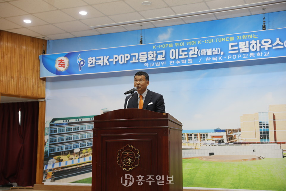 박병규 교장은 환영사를 통해 “한국K-POP고가 탄생하기까지 모두가 의문을 품을 때 믿고 지원해 준 김지철 충남교육감을 비롯해 홍문표 국회의원, 이종화 도의원을 비롯해 예산지원에 힘써준 모든 분들께 진심으로 감사드린다”면서 “이 자리에 있는 학생들이 향후 우리나라의 문화사업을 이끌어 갈 재목으로 성장할 것을 믿어 의심치 않는다”고 말했다.
