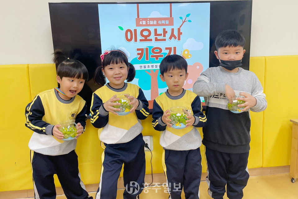 한울초등학교 병설유치원(원장 조국현)은 ‘제78회 식목일’을 맞아 전체유아 51명과 함께 개인 화분에 이오난사 식물 키우기 행사를 실시했다.<사진>