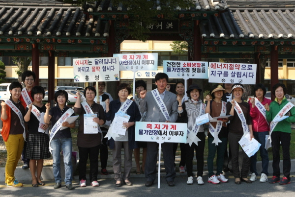 홍성군이 오는 28일까지 추석명절 물가안정 특별대책기간으로 정하고 운영 중인 가운데, 지난 9월 24일 공무원 및 소비자단체 회원 등 30여명이 참석한 가운데 홍성읍 일원에서 물가안정 캠페인을 실시해 적극적인 추석 물가잡기에 나섰다.