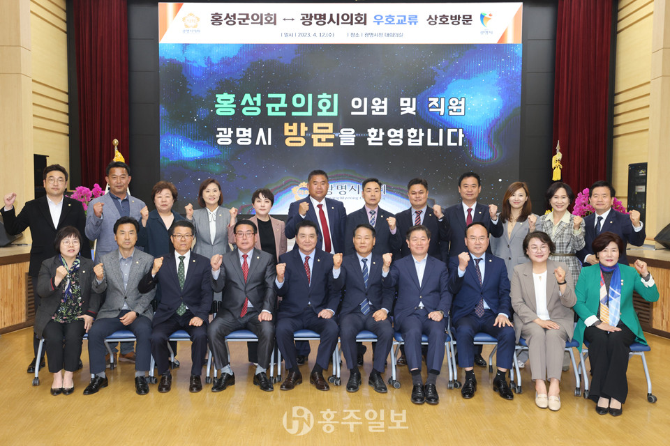 홍성군의회(의장 이선균)와 광명시의회(의장 안성환)는 지난 12일 광명시청 대회의실에서 우호교류 협약 전 상호발전 방안 모색을 위한 간담회를 개최했다.<사진>