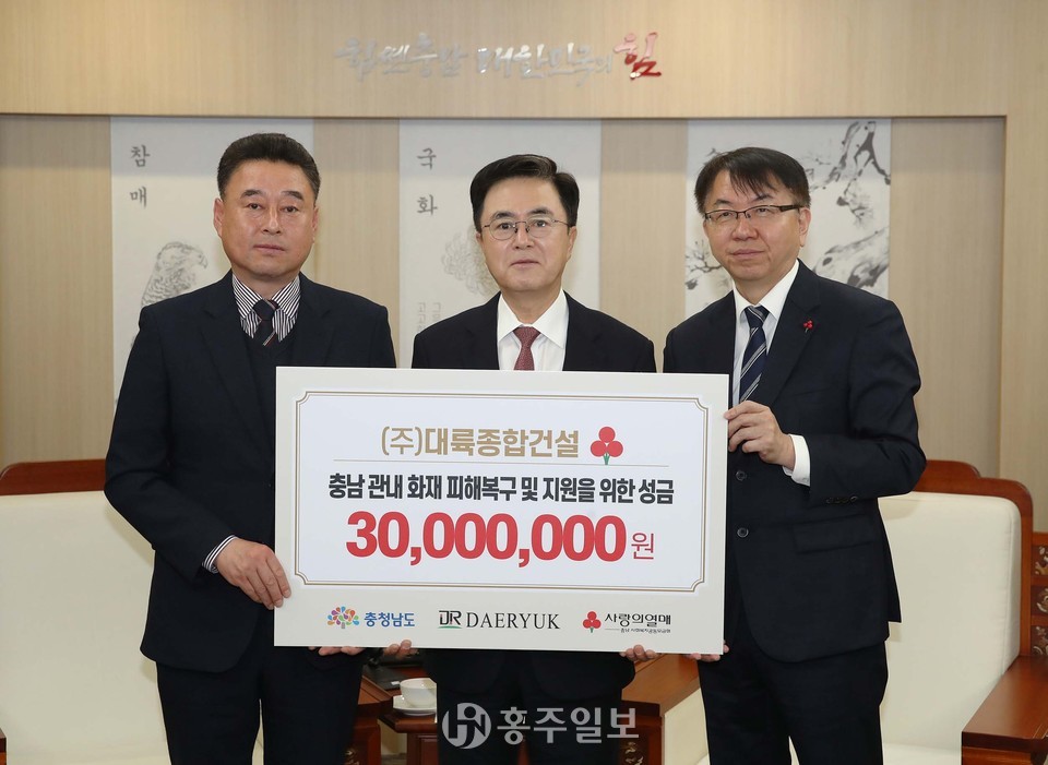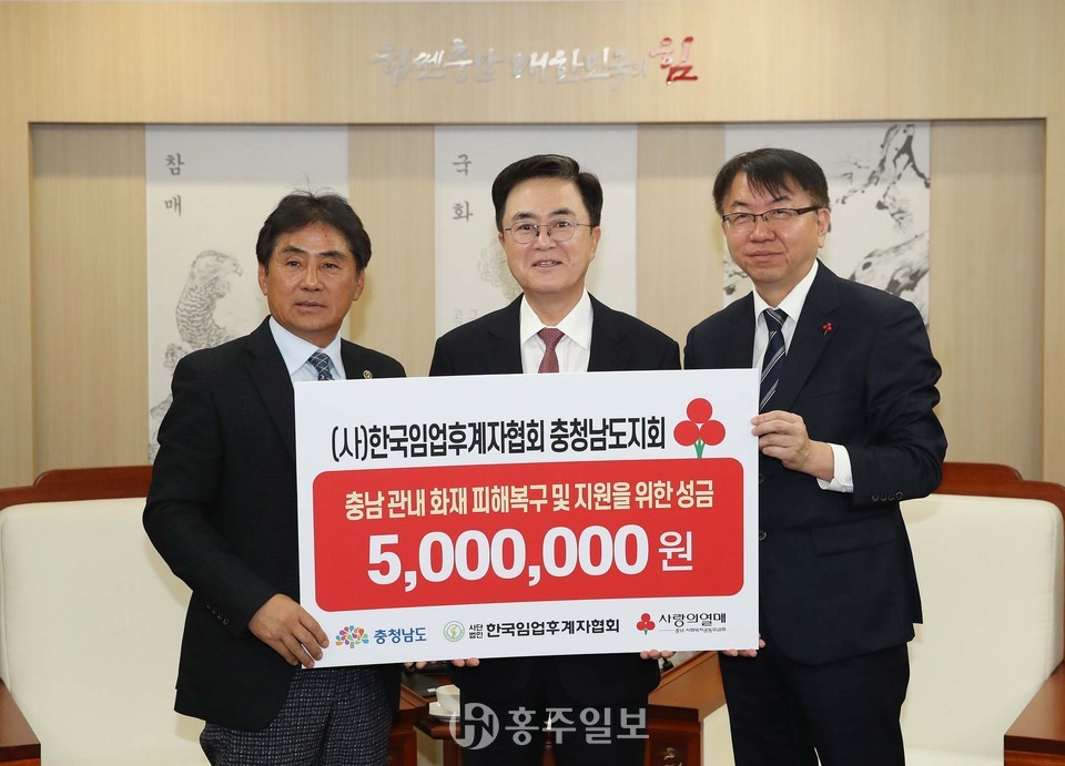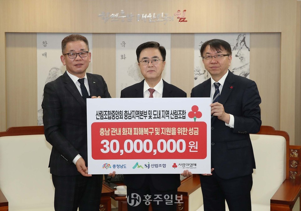 도는 기탁 받은 성금을 충남사회복지공동모금회에 전달해 산불 피해 지역민을 돕는 데 활용할 계획이다.