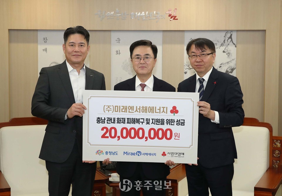 지난 2일 충남도 내 동시다발적으로 발생한 산불로 피해를 받은 도민을 위해 각계각층의 온정이 이어지고 있다. 도는 14일 도청 접견실에서 9개 기관·기업으로부터 총 3억 3500만 원의 산불 피해 복구 지원 성금을 전달받았다.