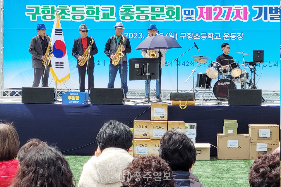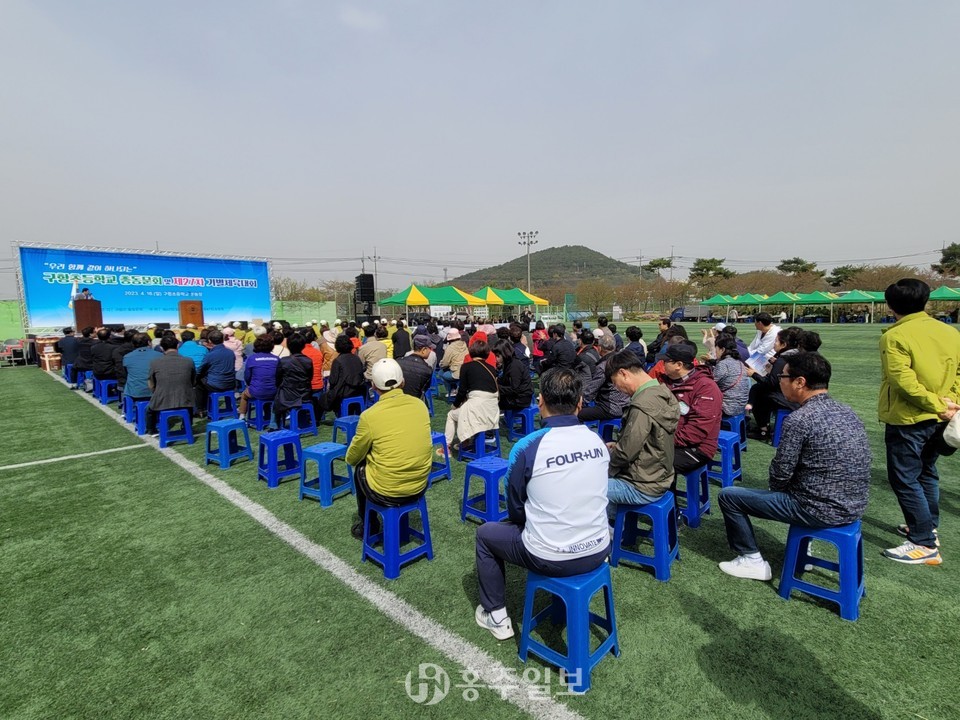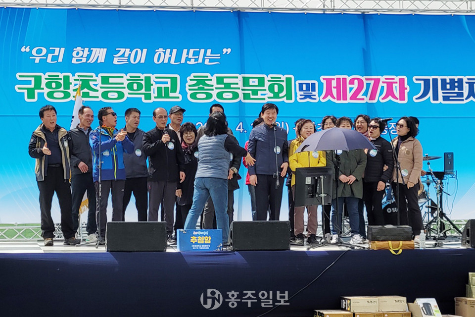 이날 행사에는 홍문표 국회의원을 비롯해 이종화 충남도의회 의원, 이선균 홍성군의회 의장, 장재석 부의장, 김덕배 의원, 권영식 의원, 이정희 의원, 이기태 구항면장, 이종건 전 군수(17회) 등 내외빈 400여 명이 참석한 가운데 제47회 동창회의 후원으로 열렸다.