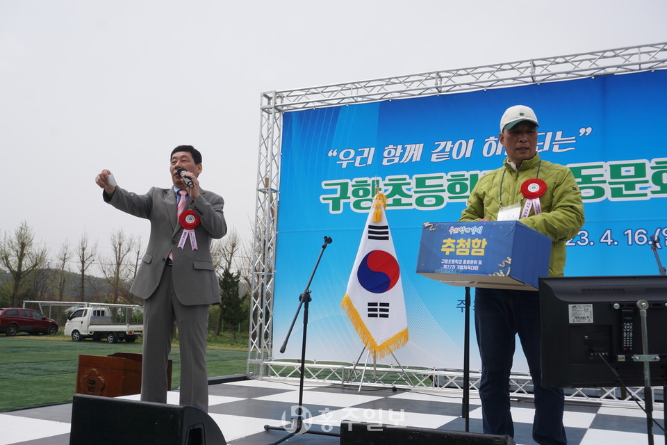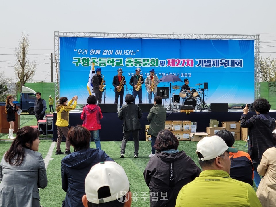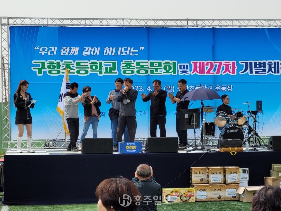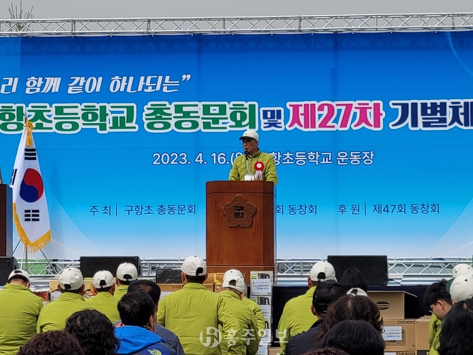 구항초등학교총동문회(회장 전익수·40회)가 주최하고 제42회 동창회(대회장 방승화) 주관한 ‘구항초등학교 총동문회 및 제27차 기별체육대회’가 지난 16일 모교 운동장에서 개최됐다.<사진>