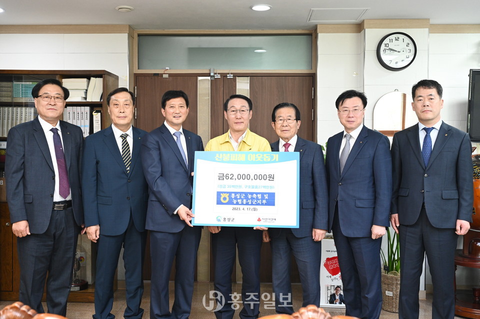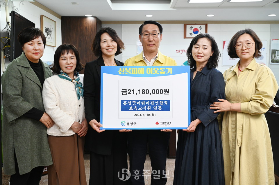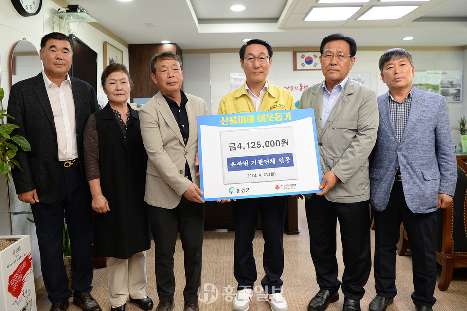 홍성군 서부·결성 지역에 발생한 초대형 산불의 피해 이웃을 위한 지역의 기관사회단체와 각계각층의 성금 기부가 잇따르고 있다.