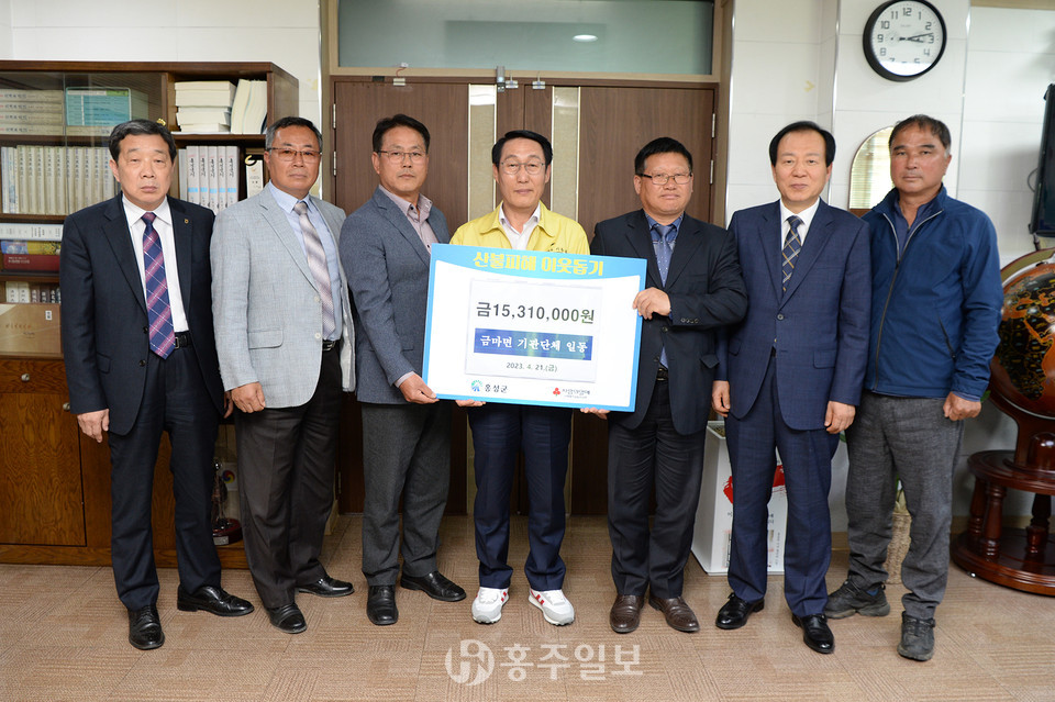 그 외에도 지난 10일 △홍성군 어린이집연합회 보육교직원 2118만 원, 17일 △홍성군 농축협 및 농협 홍성군지부 6200만 원, 19일 △홍성군의사회 1500만 원 등 많은 이들의 성원으로 21일까지 약 7억 원의 성금액이 모였다고 밝혔다.