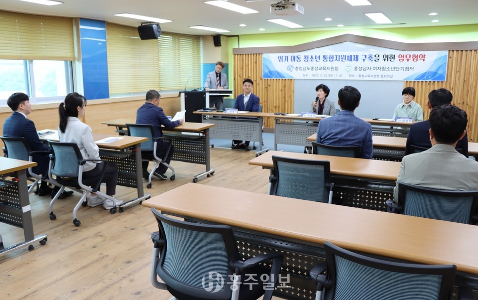 홍성교육지원청(교육장 이정순)은 지난 25일 홍성교육지원청 중회의실에서 홍성남자단기청소년쉼터 및 홍성여자단기청소년쉼터와 위기 아동·청소년 통합지원체계 구축을 위한 업무협약을 맺었다.