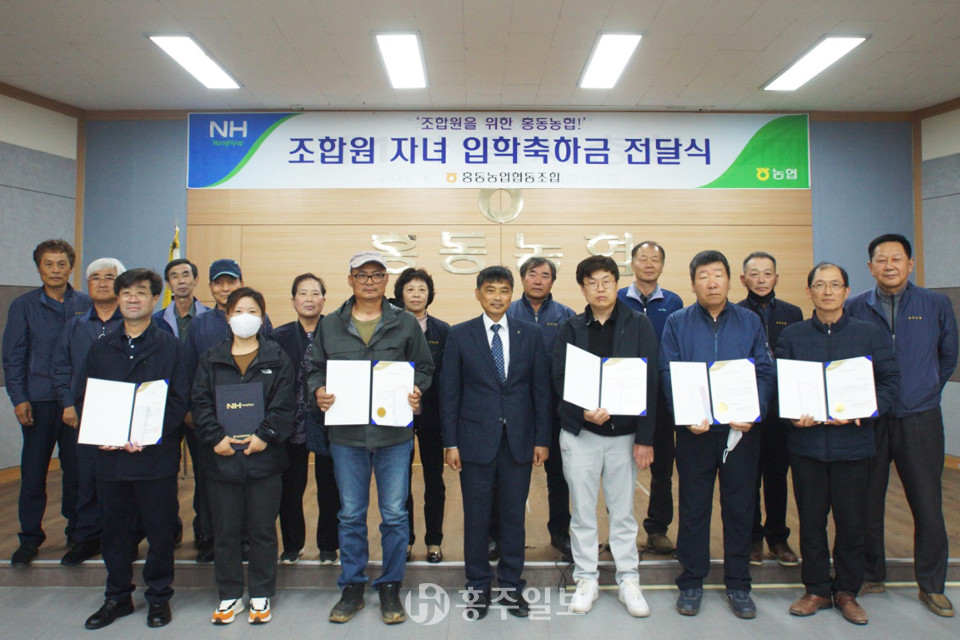 홍동농업협동조합(조합장 주정산)은 지난 17일 본점 2층 대회의실에서 조합원 자녀 입학축하금 전달식을 개최했다.<사진>