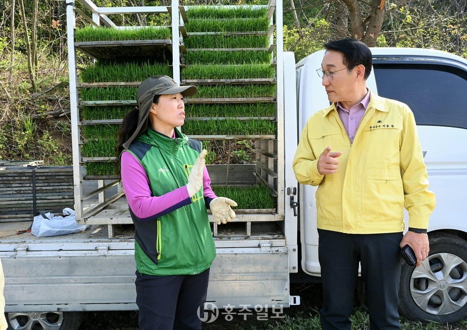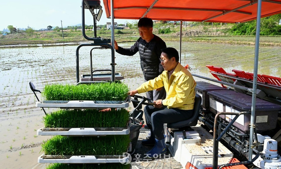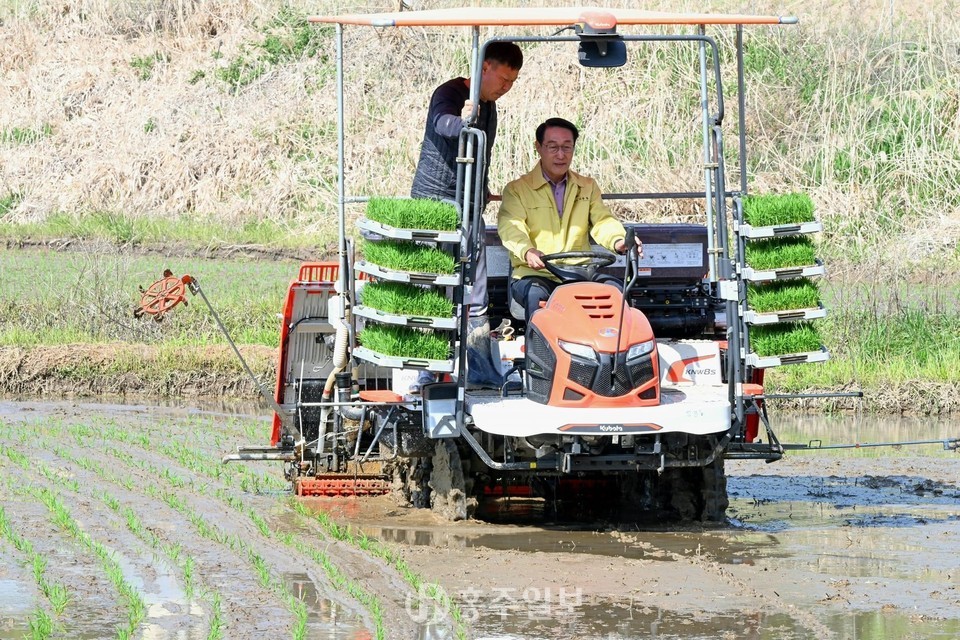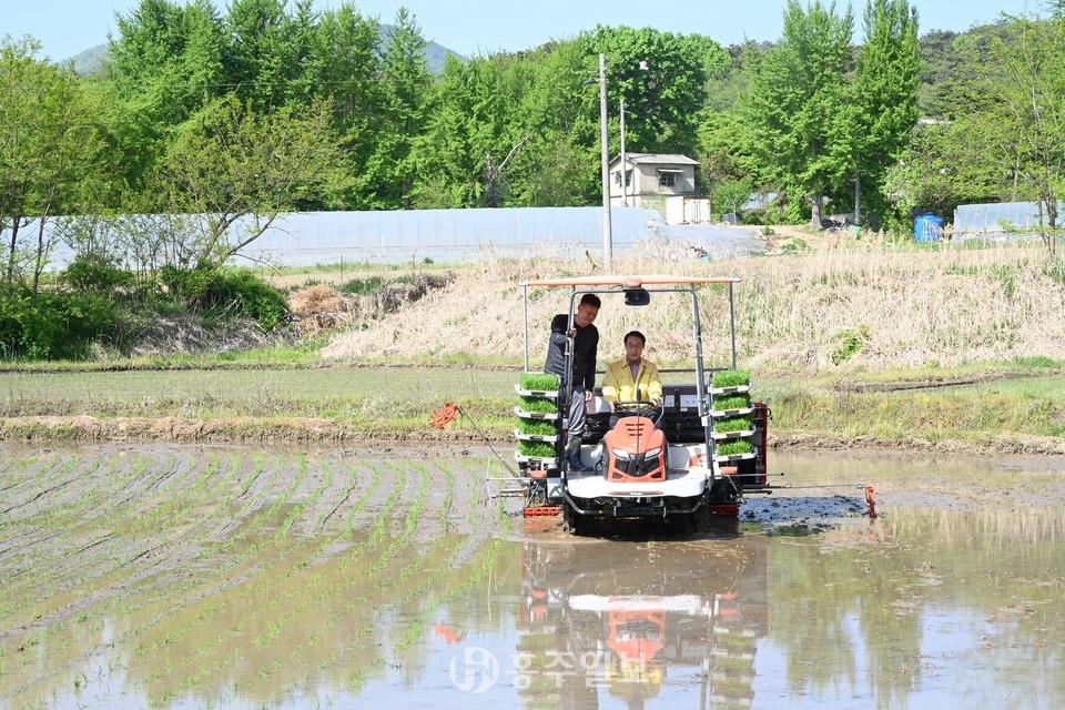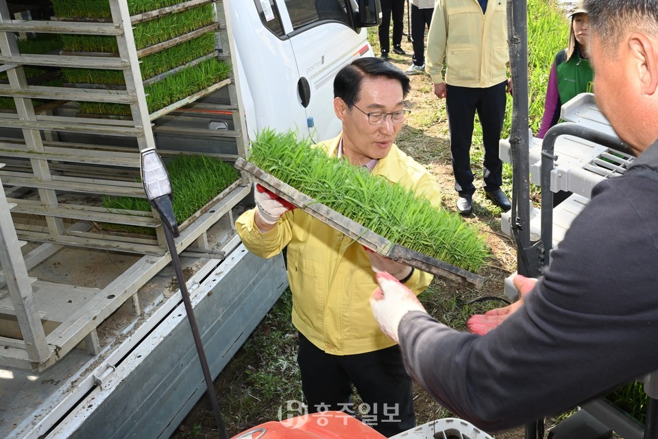 한편 이날 현장에 이용록 홍성군수가 방문해 직접 모판을 나르고 이앙기 몰며 모내기 영농체험을 하고, 농업현장의 애로사항을 청취하며 농업인과 관계자들을 격려하기도 했다.